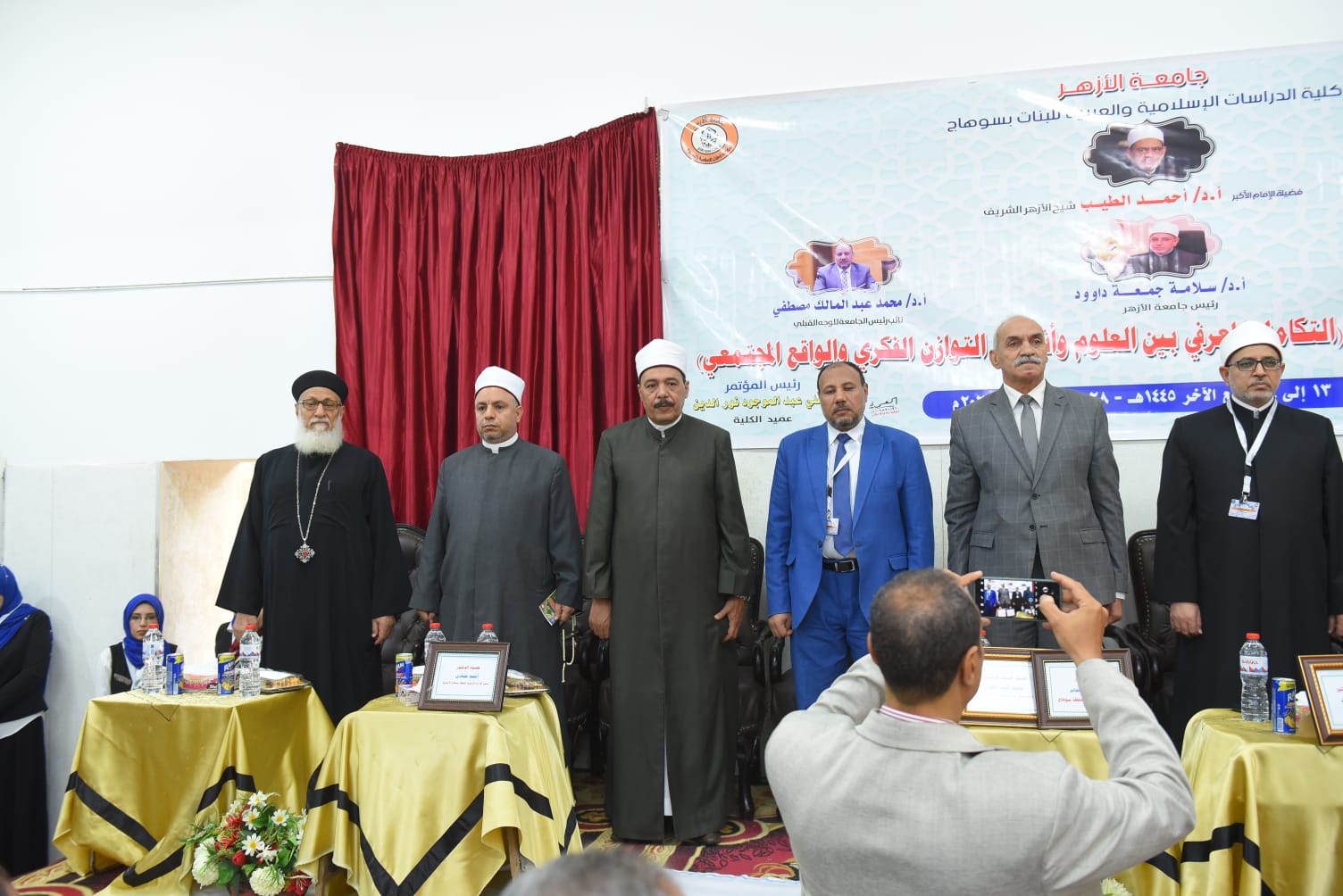 جاء ذلك بحضور اللواء علاء عبد الجابر، سكرتير عام محافظة سوهاج، والدكتور عباس شومان، وكيل الأزهر الأسبق، والدكتور علي عبد الموجود نور الدين، عميد كلية الدراسات الإسلامية والعربية للبنات جامعة الأزهر بسوهاج رئيس المؤتمر، والدكتور جابر سليم، عميد الكلية السابق، والدكتورة فاطمة المهدي، وكيل الكلية للدراسات العليا والبحوث مقرر عام المؤتمر، والقمص كيرلس فهيم، ممثل نيافة المطران باخوم مطران، سوهاج والمنشأة والمراغة، والنائب اللواء مجدي القاضي، عضو مجلس الشيوخ، والنائب زكريا حسان، عضو مجلس النواب، والدكتور أحمد حمادي، رئيس الإدارة المركزية لمنطقة سوهاج الأزهرية، ولفيف من عمداء ووكلاء الكليات وأعضاء هيئة التدريس بالكلية، وشخصيات من المجتمع المدني بمحافظة سوهاج، إضافة إلى طالبات الكلية.