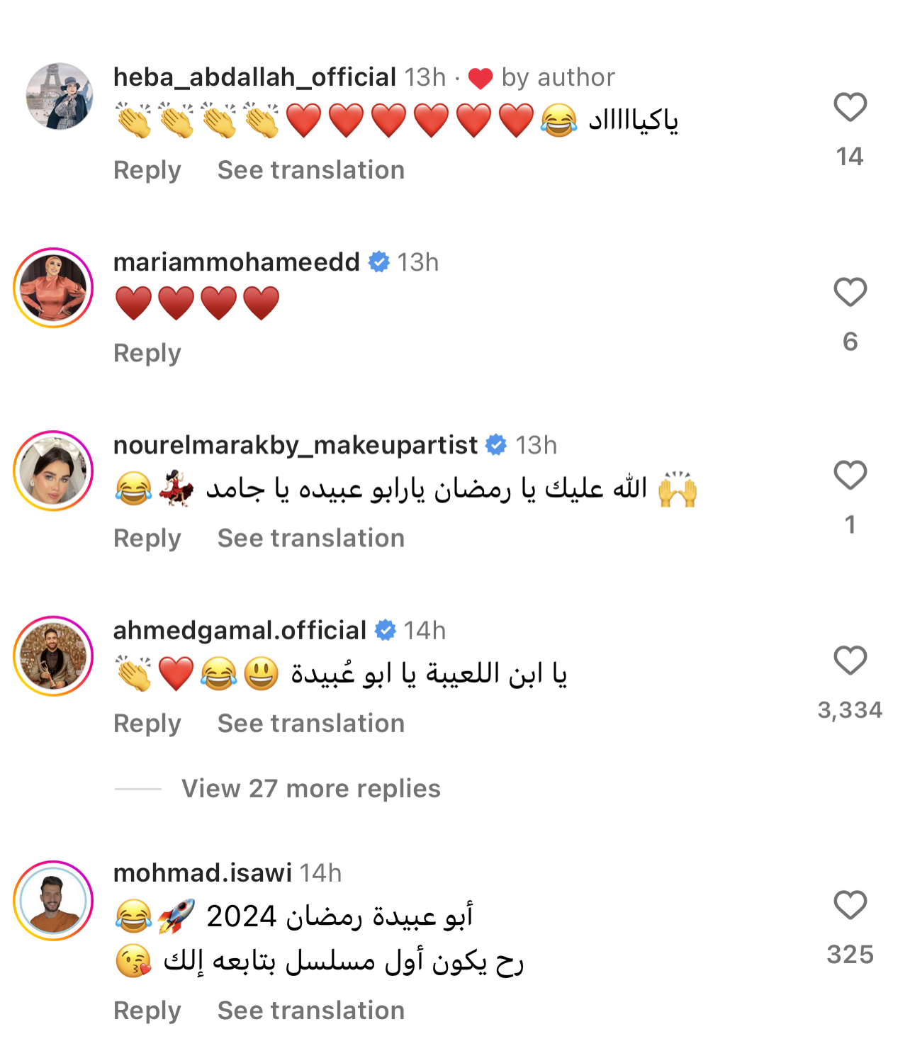 وجاءت التعليقات من قبل رواد السوشيال ميديا، علي فيديو محمد رمضان، كالاتي: "الله عليك يا رمضان يا أبو عبيدة يا جامد - يا ابن اللعيبة يا ابو عبيدة - أبو عبيدة رمضان 2024 رح يكون أول مسلسل بتابعه لك".