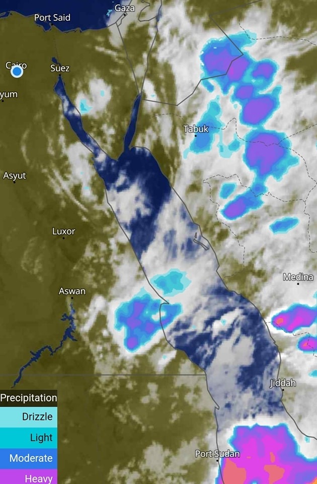 وكشفت الأرصاد في بيانها، عن فرص سقوط أمطار خفيفة إلى متوسطة تكون رعدية أحيانا على مناطق من سلاسل جبال البحر الأحمر وسيناء على فترات متقطعة، فيما تتساقط أمطار خفيفة على مناطق من السواحل الشمالية وشمال الوجه البحري على فترات متقطعة.