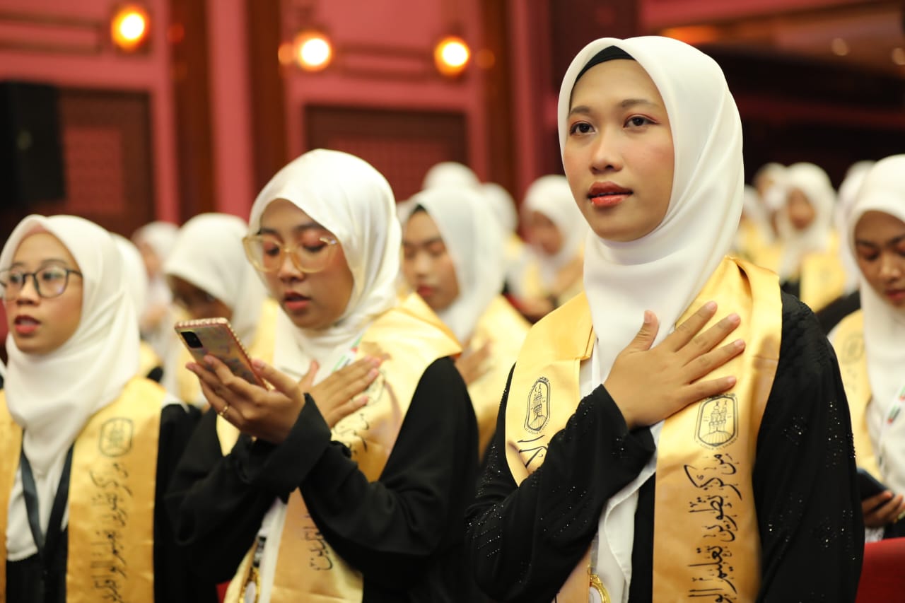 واختتم فضيلته قائلا: "أبنائي وبناتي الخريجين لقد درستم في أشرف بقاع الأرض مصر التي وطأت أرضها أقدام الأنبياء وسكنها الصالحين والأولياء، وتخرجتم في جامعة من أعرق الجامعات عمرها يزيد على ألف عام، وإذ نحتفي بتخرجكم اليوم، فقد سبقكم علماء ورؤساء دول وزعماء ووزراء تخرجوا من هنا وتركوا بصمات في بلادهم فكونوا خير امتداد لهم و نسأل الله أن يجعلكم خير سفراء لبلادكم وللأزهر الشريف".