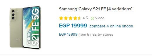 ويبدأ سعر هاتف سامسونج Galaxy S21 FE 5G في السوق المصري بسعر 19 ألف و 999 جنيها، علما بأن السعر يختلف حسب النسخة وأيضا حسب المتجر.