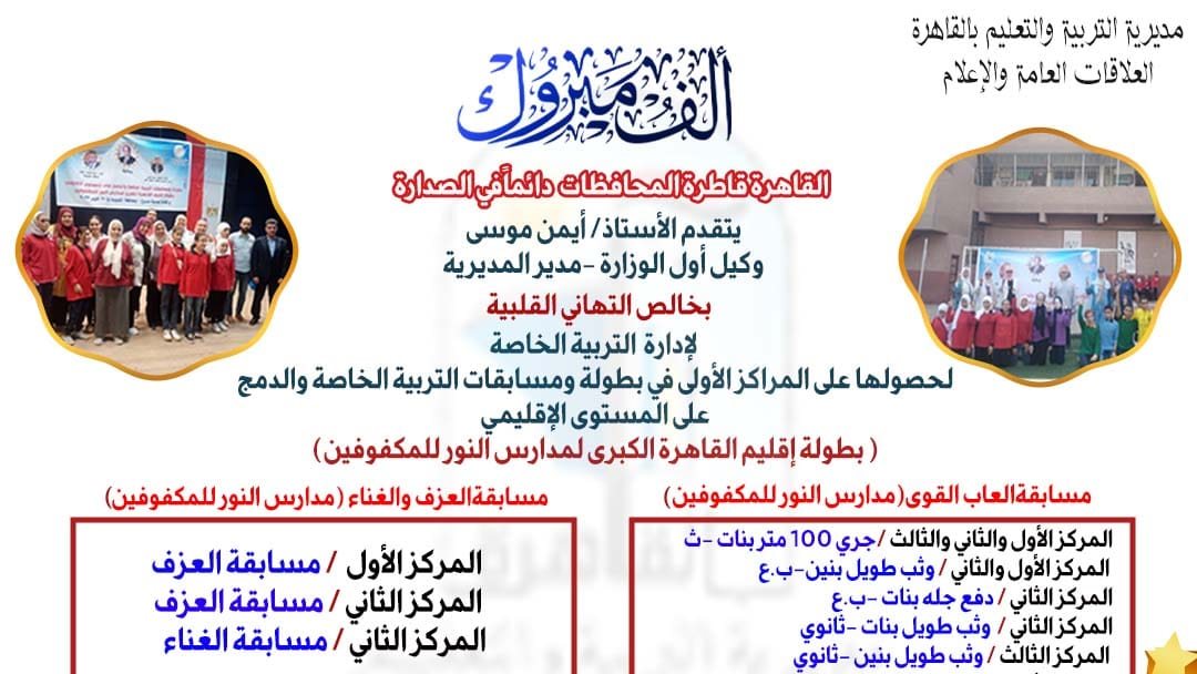 الساعة ٩ صباحاً ، برعاية الدكتورة اماني قرني ، وكيل وزارة التربية والتعليم وأ. ريحاب عريق وكيل المديرية