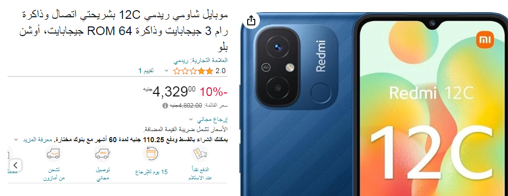 يبحث دائماً الشباب عن الهواتف الذكية ذات السعر المنخفض مع ميزات كثيرة، من أهمها البطارية التى توفر أطول وقت من الإستخدام، ومن بين أميز هذه الخيارات لهذا الفئة شاومي Redmi 12C، الذى ياتى بسعر 4329 جنيهاً.