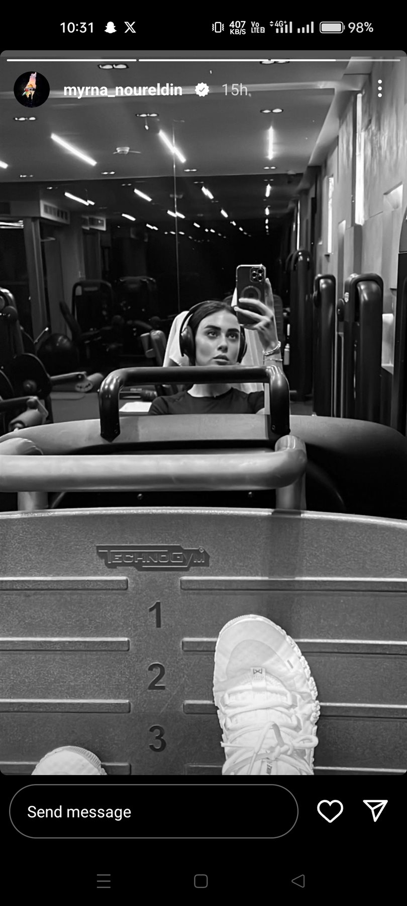 وظهرت ميرنا نور الدين ، في الصور من داخل الجيم أثناء ميرانها اليومي.