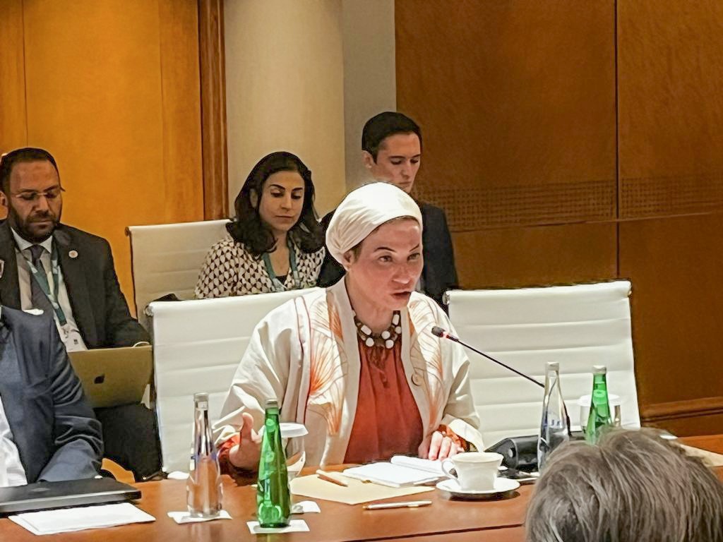 وتابعت ياسمين فؤاد:" مصر تنفذ التزامتها فيما يتعلق بالتحول الأخضر ومواجهة التغيرات المناخية ".