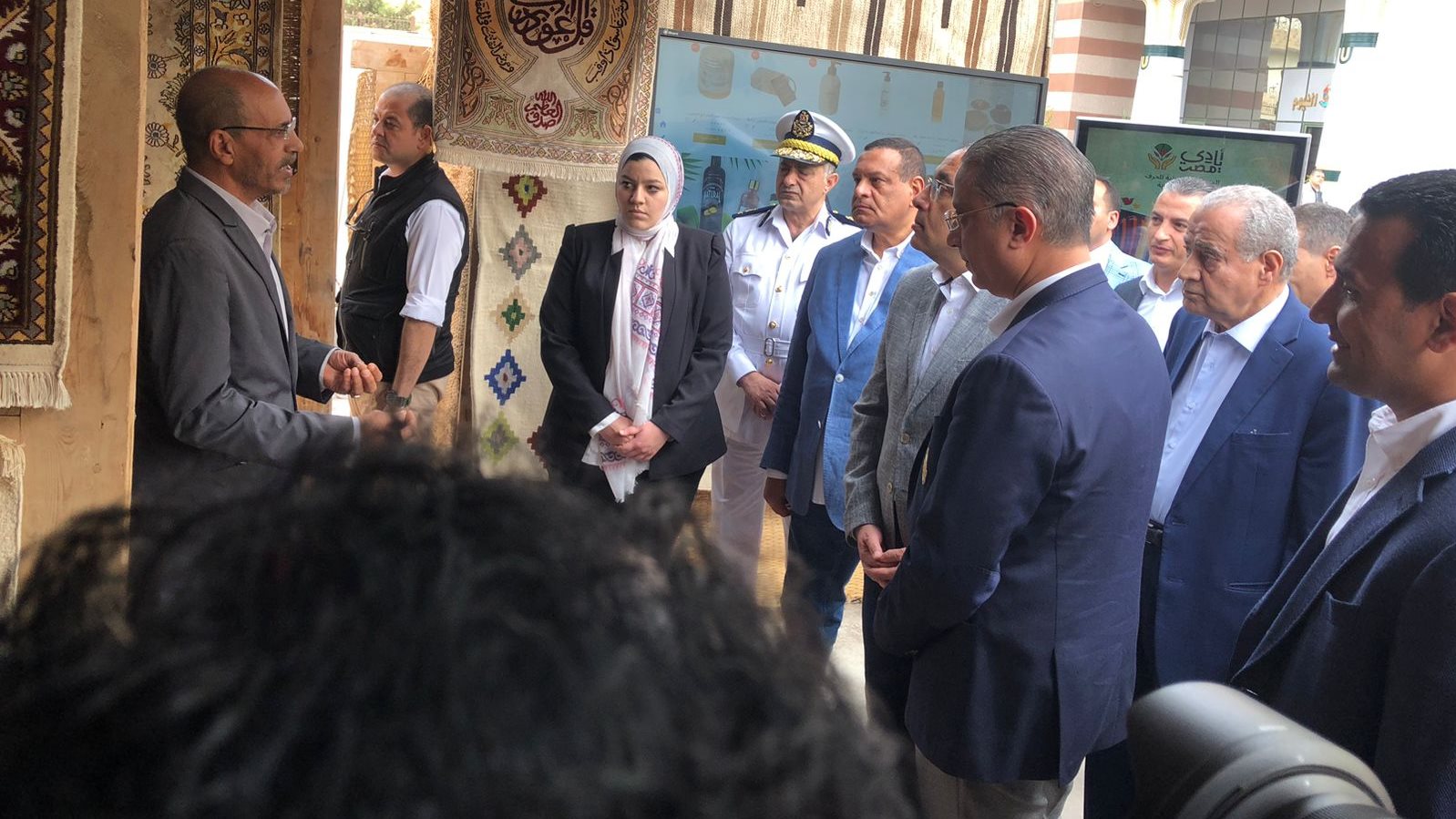 واستمع مدبولي لشرح حول المعروضات وصناعها حيث يضم المعرض حرف السجاد والمفارش والفخار والاعمال الخشبية واسعار كل سلعة منها .