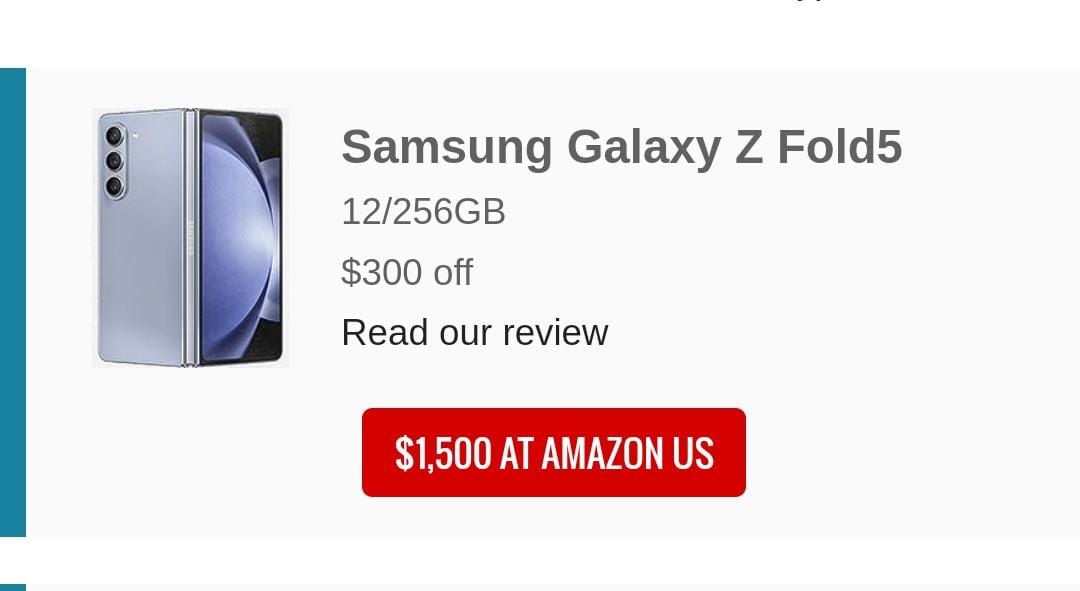 فشاهدنا عرضا رائعا على موقع أمازون ألمانيا يبيع هاتف سامسونج Samsung Galaxy Z Fold 5 بتخفيض بقيمة 300 دولار أمريكي (أي ما يعادل تقريبا 9000 جنيه مصري ) ليصل سعره بعد الخصم إلى 1500 دولار.