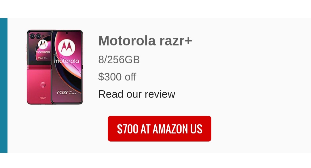فشاهدنا عرضا رائعا على موقع أمازون الولايات المتحدة لهاتف موتورولا Motorola Razr + بخصم 300 دولار أمريكي أي ما يعادل أكثر من 9000 جنيه مصري تقريبا، ليصل سعره بعدها 700 دولار أمريكي.