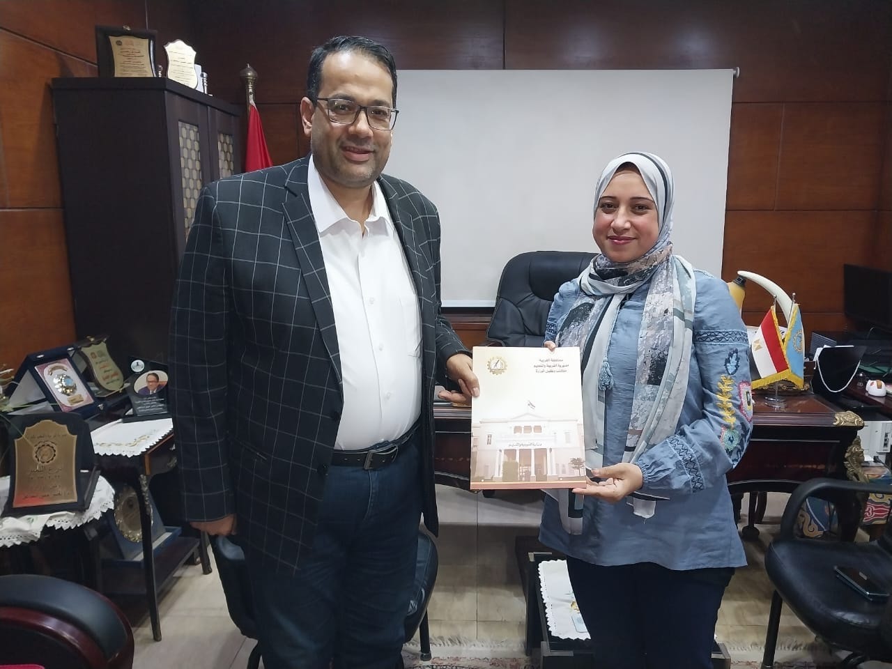 واهدى رئيس الهيئة درع التميز لمحافظة الغربية وذلك لحصول المحافظة على المركز الأول في مجال محو الأمية في مبادرة فخامة رئيس الجمهورية حياة كريمة بمركز زفتى .