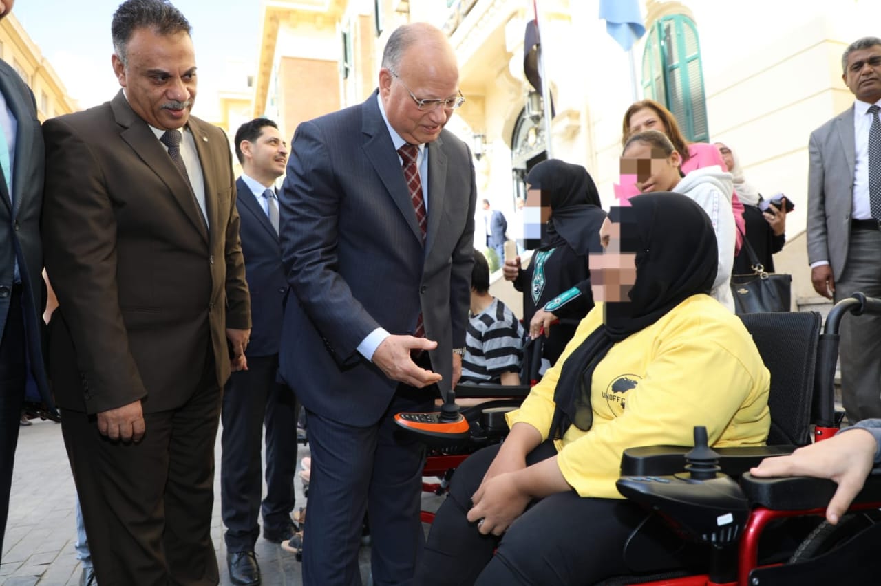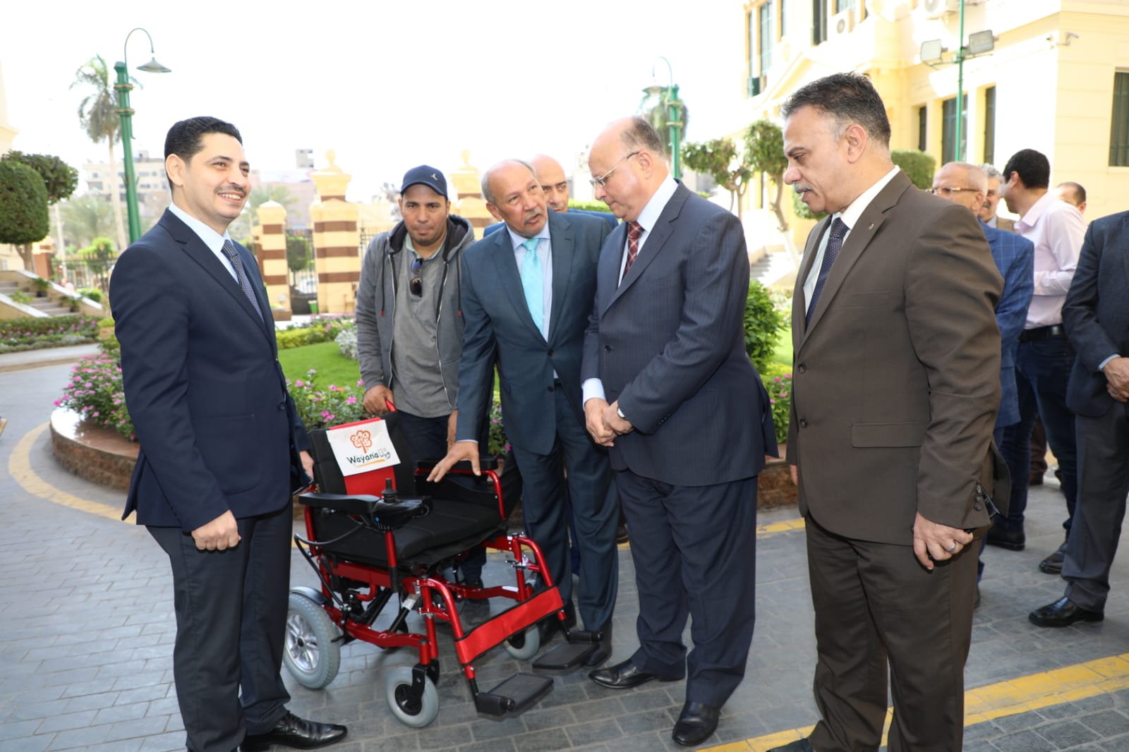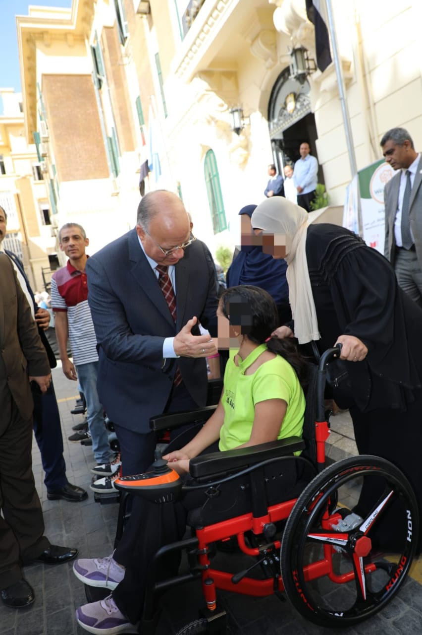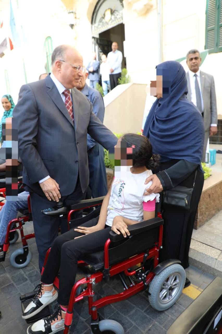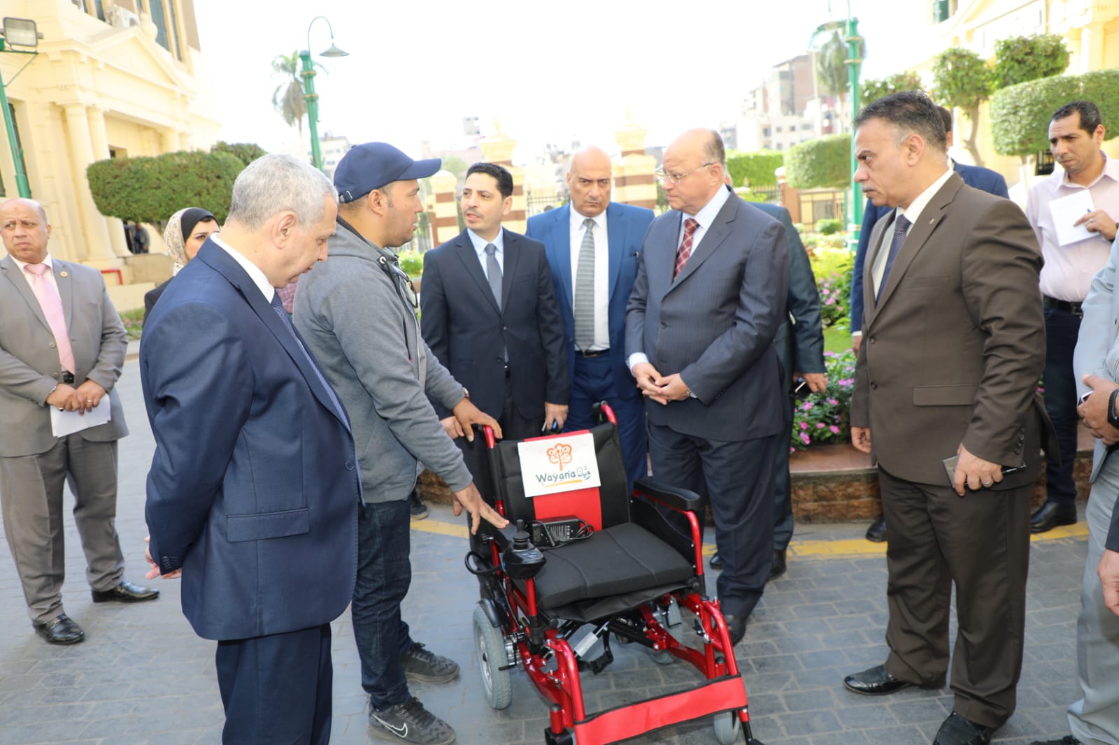 قام اللواء خالد عبد العال محافظ القاهرة بتوزيع 9 كراسى كهربية متحركة على عدد من ذوى الهمم.