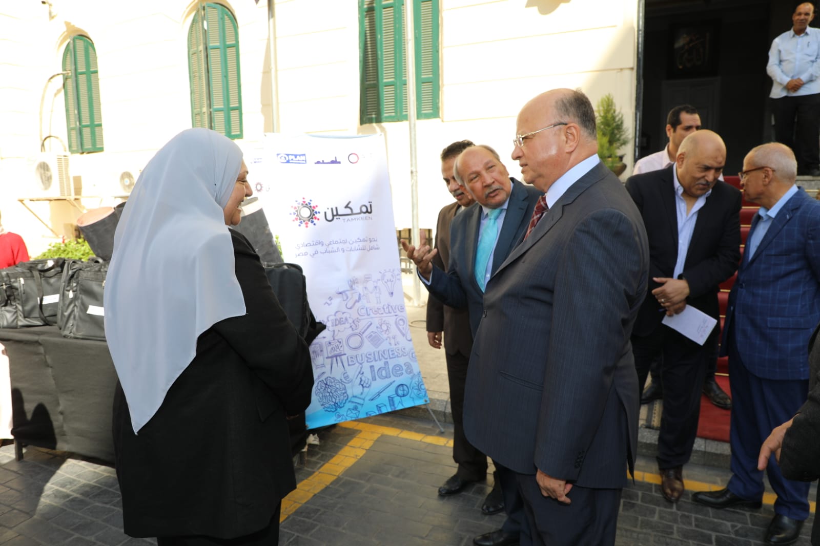 كما قام محافظ القاهرة بتوزيع 15 حقيبة عِدة مقدمة من إحدى الجمعيات الأهلية تحوي أدوات بدء مشروع تصنيع جلود ( جلود، ألوان ، قماش بطانة، مقص ومسطرة، وأقلام تحديد، وكلْة للصق، ولوحة دق تيفلون، ومطرقة خشبية، ومزيتة ، وسوست ، وإبر) على عدد من المستفيدات من مشروع تمكين الذي يستهدف تقديم مجموعة من التدريبات المجانية للشباب من سن 18 حتى 35 سنة وان يكونوا حاصلين علي مؤهل متوسط لتأهيلهم لسوق العمل وتدريبهم على الحرف.