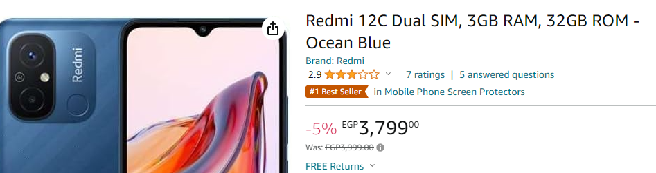 يمكنك شراء Redmi 12C باللون الأزرق بسعر 3800 جنيهاً مصرياً.