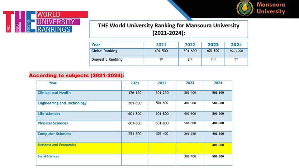 جامعة المنصورة تتصدر الجامعات المصرية والعربية