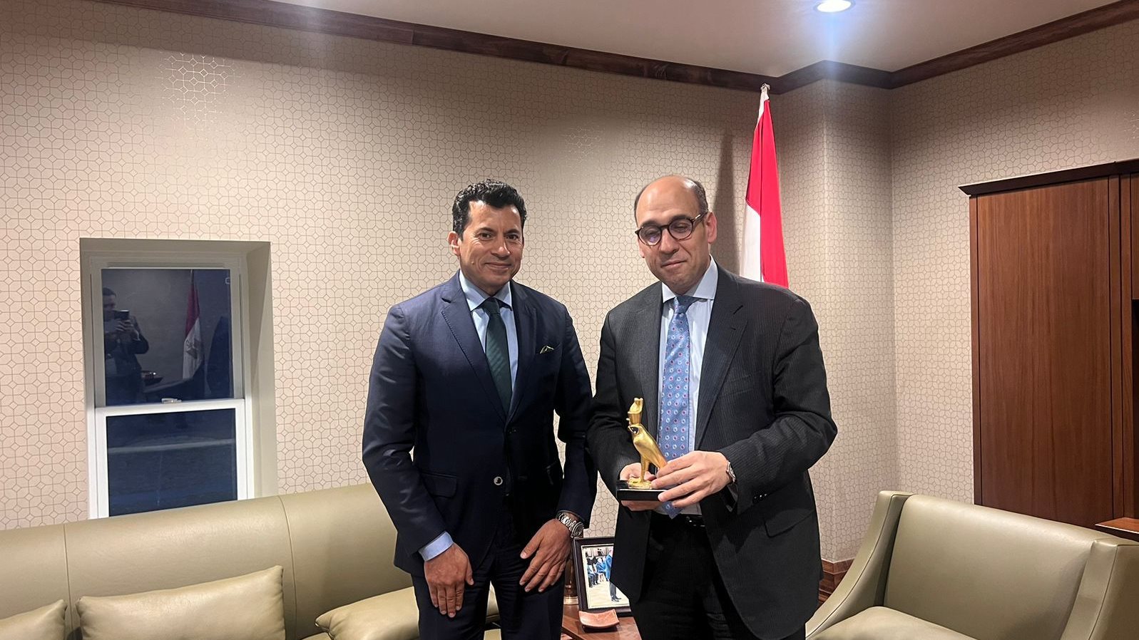 يذكر أن وزير الشباب والرياضة عقب وصوله، قام بزيارة السفارة المصرية بكندا، وكان في استقباله السفير المصري أحمد حافظ ونائبه رحاب شاور.