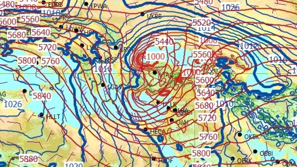 وتتأثر البلاد بمنخفض جوى متعمق متمركز على البحر المتوسط يصاحبه حوض علوى بارد فى طبقات الجو العليا ،يعمل عل انخفاض فى درجات الحرارة وسقوط أمطار متفاوتة الشدة تكون غزيرة ورعدية على بعض المناطق.