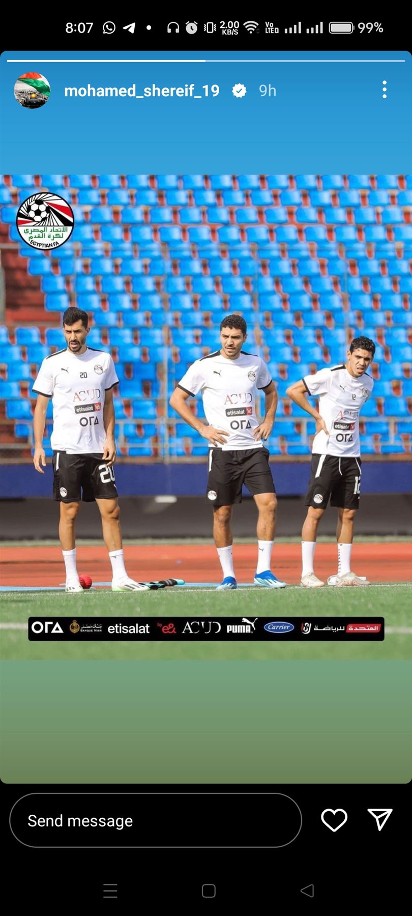 شارك محمد شريف نجم منتخب مصر صورة جديدة له عبر صفحته على موقع التواصل الاجتماعي لتبادل الصور والفيديوهات القصيرة إنستجرام خلال خاصية الاستوري.