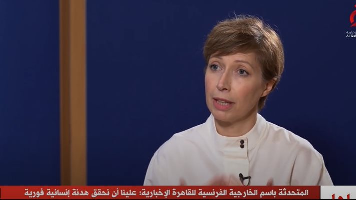 وقالت آن كلير لوجندر في حوارها على قناة " القاهرة الإخبارية، :" فرنسا أتاحت جمع مليار يورو لشعب غزة بالإضافة إلى 100 مليون ستقدمهم الدولة الفرنسية".
