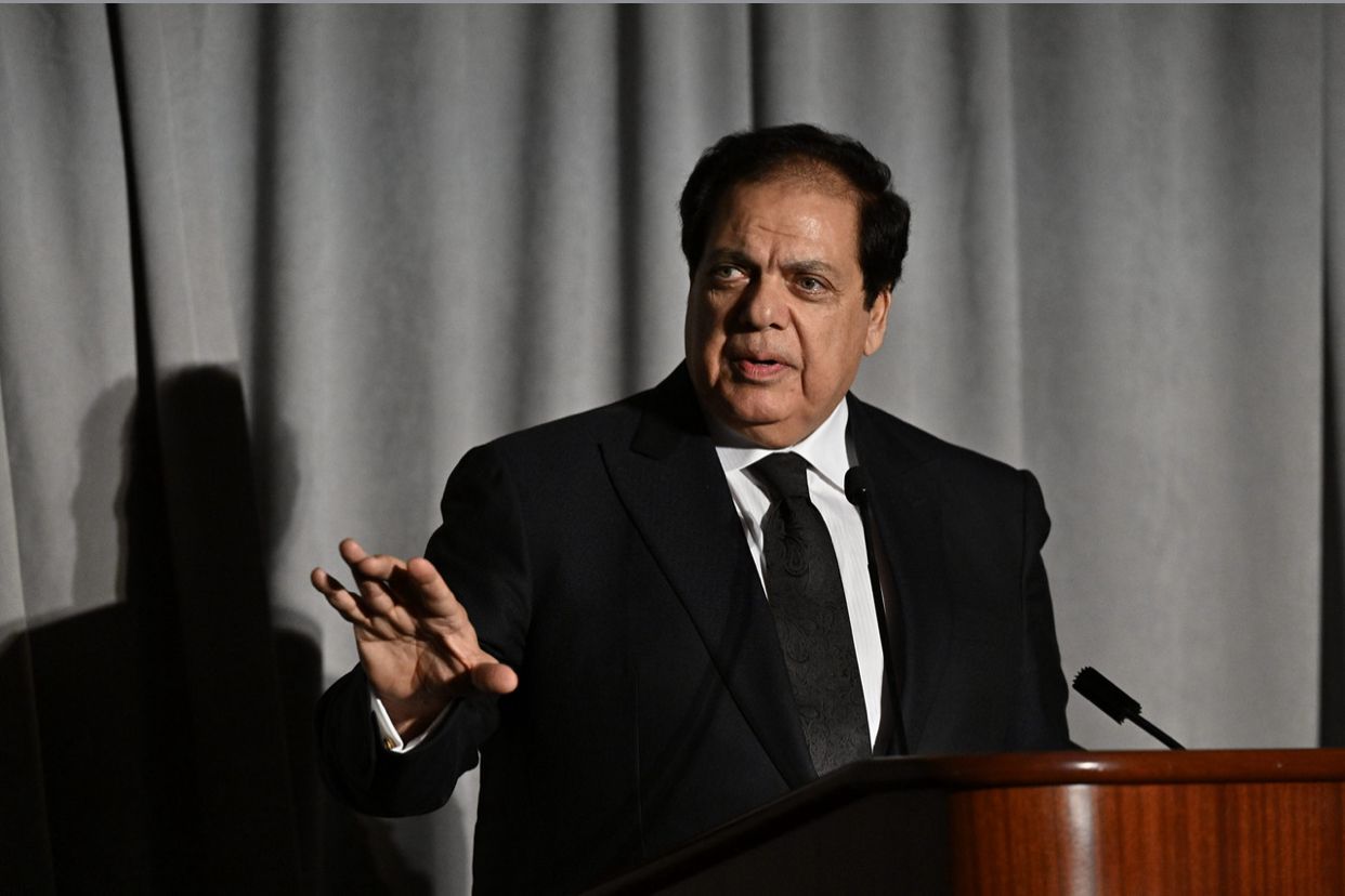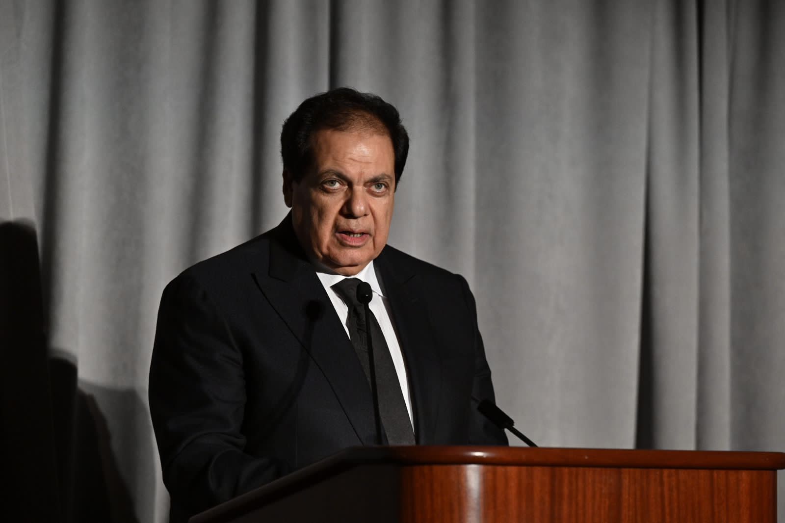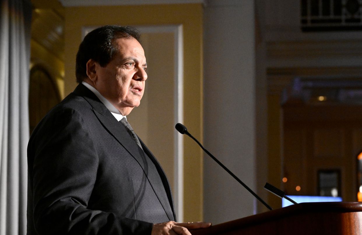 وقال روزفلت فى كلمته إن أبو العينين شخصية سياسية استثنائية ورجل صناعة معروف ساهم في تطوير علاقات مصر وجهود التعاون في أفريقيا وأوروبا والولايات المتحدة وخارجها. كما أنه أسس ويقود مجموعة كليوباترا واحدة من أكبر الشركات فى مصر والشرق الاوسط. وهو يشغل العديد من المناصب العامة وعضو بارز فى مجلس النواب المصرى يمثل بلده بكل فخر وتميز ويمثل قدوة للآخرين. كما أنه يقدم دعمًا لا يقدر بثمن ورؤى غير عادية للمجلس الوطنى للعلاقات العربية الأمريكية بصفته عضو فى اللجنة الاستشارية الدولية للمجلس.