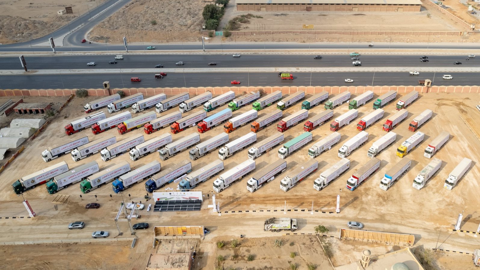 وإنسانيًا، أكد الرئيس السيسى، أن القرار كان باستمرار فتح معبر رفح البرى، لتدفق المساعدات الغذائية والطبية والوقود، وكذا استقبال الجرحى والمصابين، على الرغم من ضراوة وشدة القتال، إلا أننا حافظنا على استمرار فتح المعبر، وقد بلغت المساعدات التى قامت الدولة المصرية بإدخالها إلى قطاع غزة، حوالى "12" ألف طن، نقلتهم "1300" شاحنة، منهم "8400" طن قدمتها الدولة المصرية، من خلال الهلال الأحمر المصرى، والتحالف الوطنى للعمل الأهلى التنموى وصندوق تحيا مصر، بما يبلغ 70% من إجمالى المساعدات.