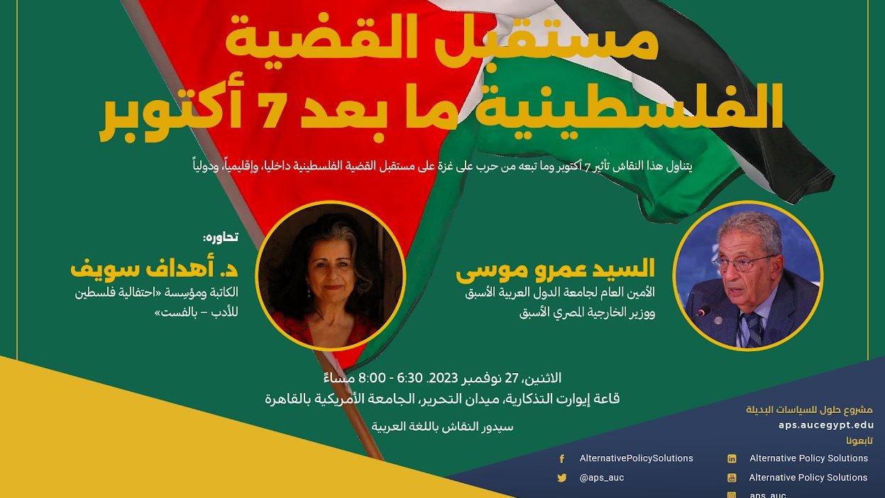 تنظم الجامعة الأمريكية بالقاهرة، اليوم، لقاء مفتوح بعنوان "مستقبل القضية الفلسطينية ما بعد 7 أكتوبر" حول تأثير أحداث يوم 7 أكتوبر وما تبعها من حرب إسرائيلية على غزة؛ على مستقبل القضية الفلسطينية داخليًا وإقليميًا ودوليًا وذلك في ذكري اليوم العالمي للتضامن مع الشعب الفلسطيني.