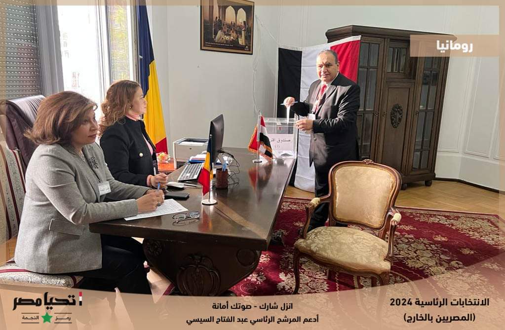 قالت الحملة الرسمية للمرشح الرئاسي عبد الفتاح السيسي، إنه خلال الساعات الأولى من فتح صناديق الاقتراع للمصريين بالخارج، توافد كبير من أبناء الجالية المصرية بدولة رومانيا على لجان الاقتراع للإدلاء بأصواتهم في الانتخابات الرئاسية 2024، مُعلنين دعمهم للمرشح عبد الفتاح السيسي.