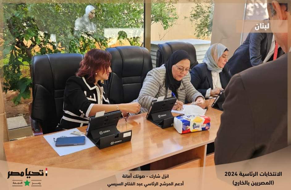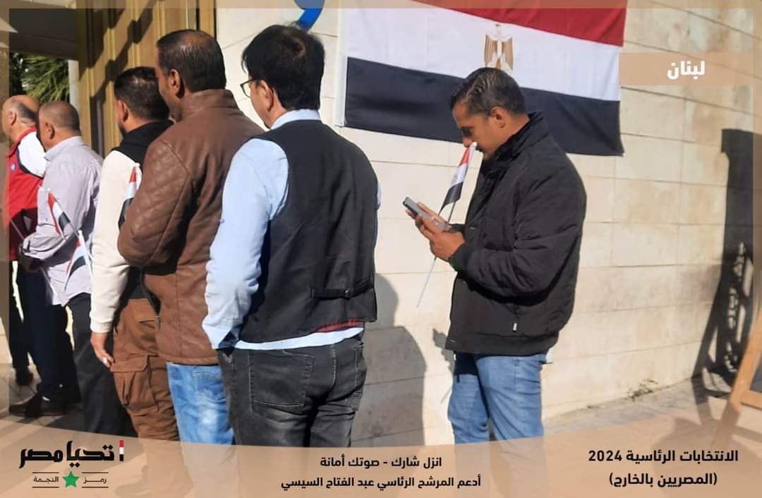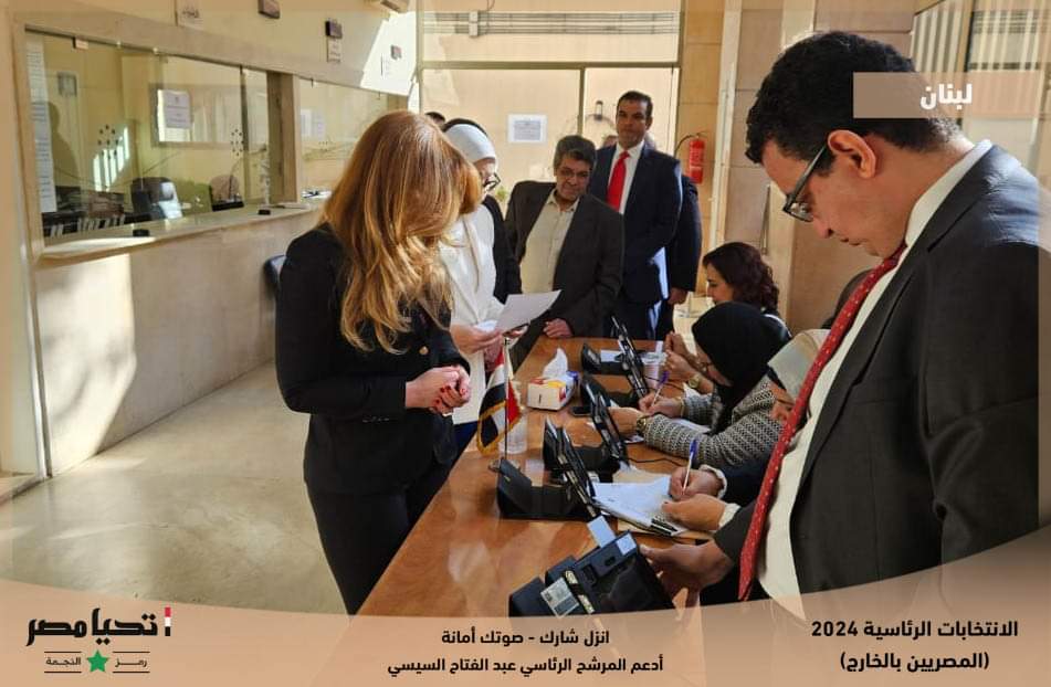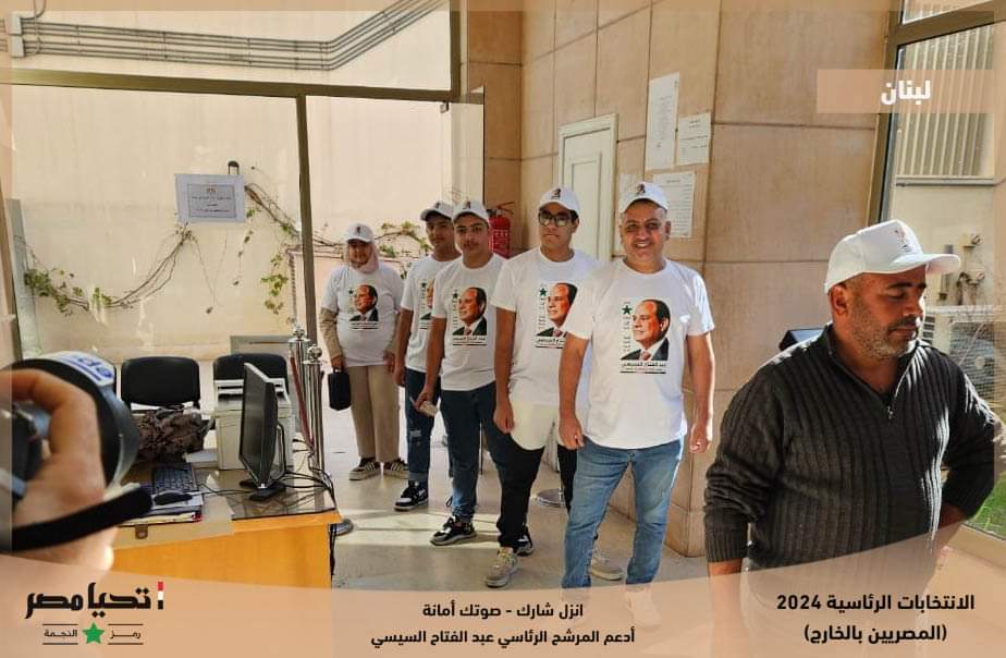 قالت الحملة الرسمية للمرشح الرئاسي عبد الفتاح السيسي، إنه استكمالاً لتوافد الناخبين من المصريين بالخارج على لجان الاقتراع نشارك معاً لقطات من توافد أبناء الجالية المصرية في لبنان للإدلاء بأصواتهم في الانتخابات الرئاسية 2024، مع إعلانهم دعم مرشحنا الرئاسي.