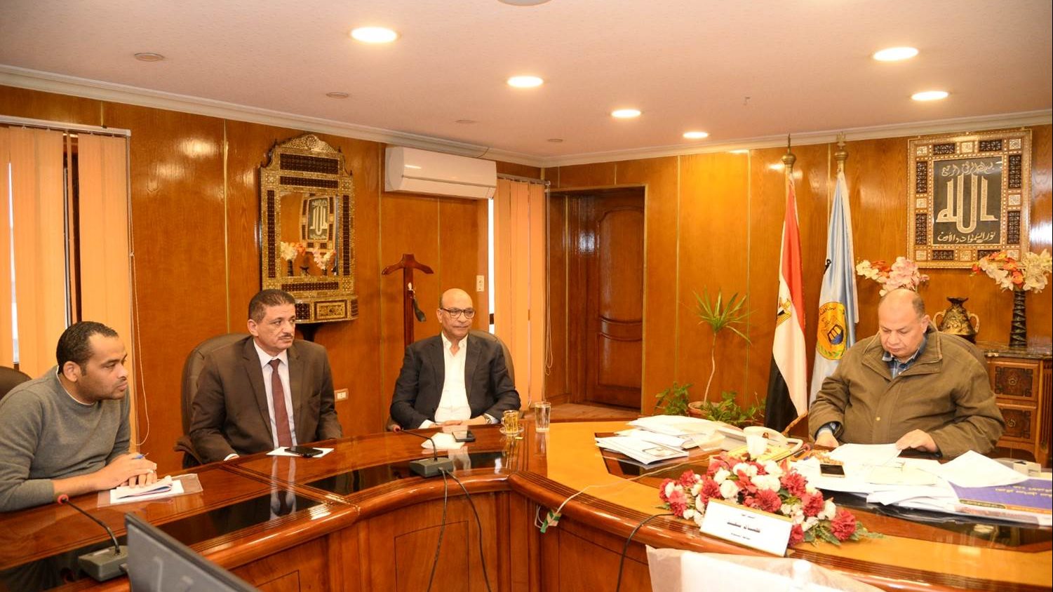 وتناول اللقاء ، مناقشة ما تم تنفيذه خلال الفترة الماضية من إجراءات قانونية ومراحل العمل للمشروعات التي يتم تنفيذها على أرض المحافظة ومناقشة معوقات التنفيذ وآلية وضع حلول لها لنهو الأعمال وفقاً للجدول الزمني المقرر.