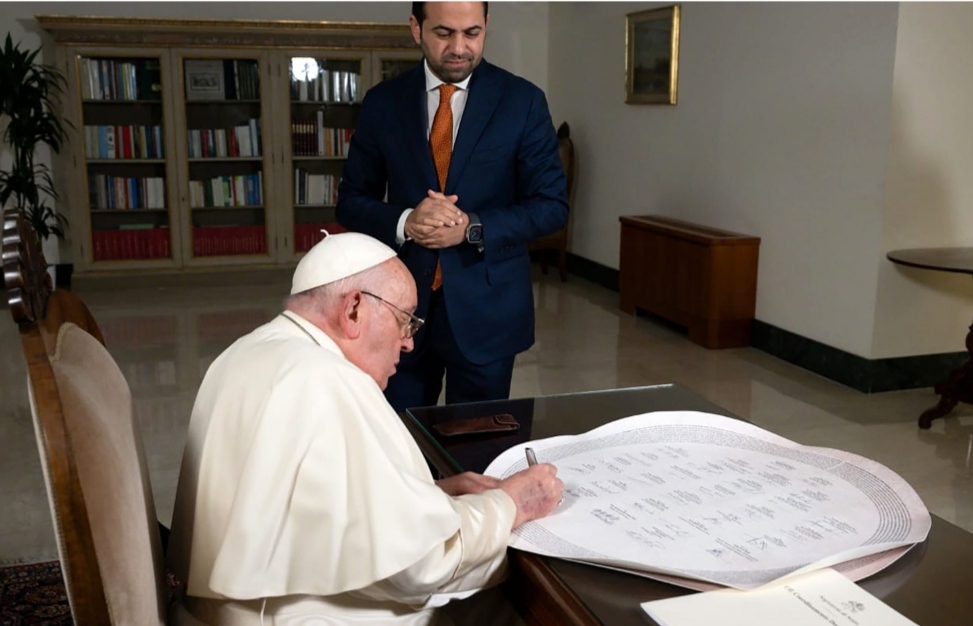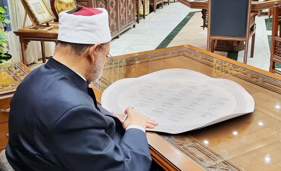 وقع البابا فرنسيس بابا الكنيسة الكاثوليكية وفضيلة الإمام الأكبر الدكتور أحمد الطيب شيخ الأزهر الشريف، اليوم الأحد، إعلانًا لدعم العمل المناخي العاجل.