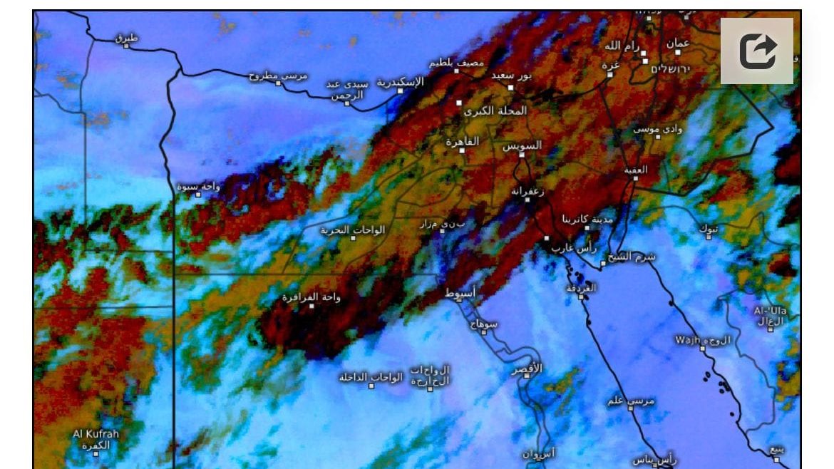 وتتهيأ فرص لأمطار متوسطة ورعدية أحيانا على مناطق من جنوب سيناء وخليج العقبة وسلاسل جبال البحر الأحمر قد تصل إلى حد السيول على بعض المناطق على فترات متقطعة، وأمطار خفيفة إلى متوسطة على مناطق من جنوب الصعيد وشمال ووسط سيناء تمتد خفيفة إلى مناطق من السواحل الشمالية وشمال الوجه البحرى على فترات متقطعة.