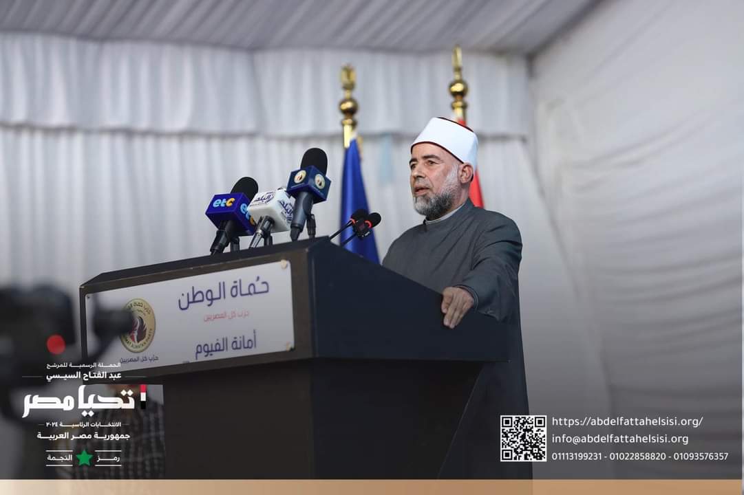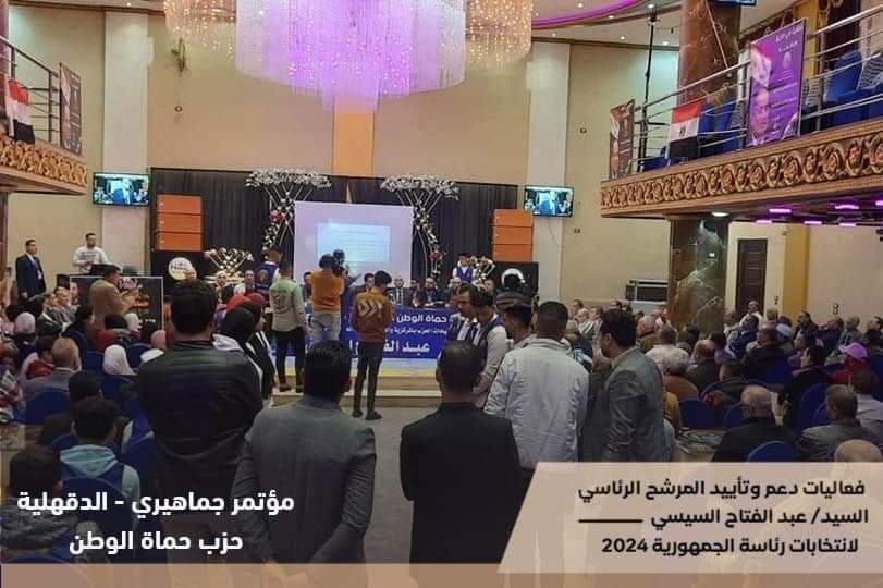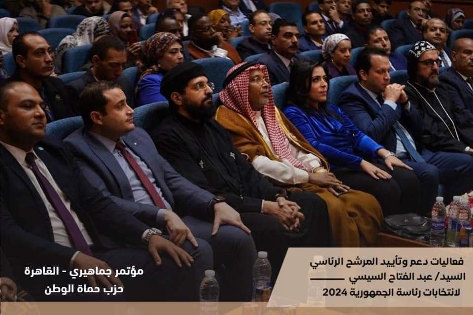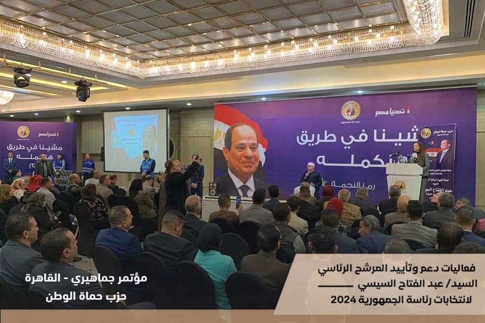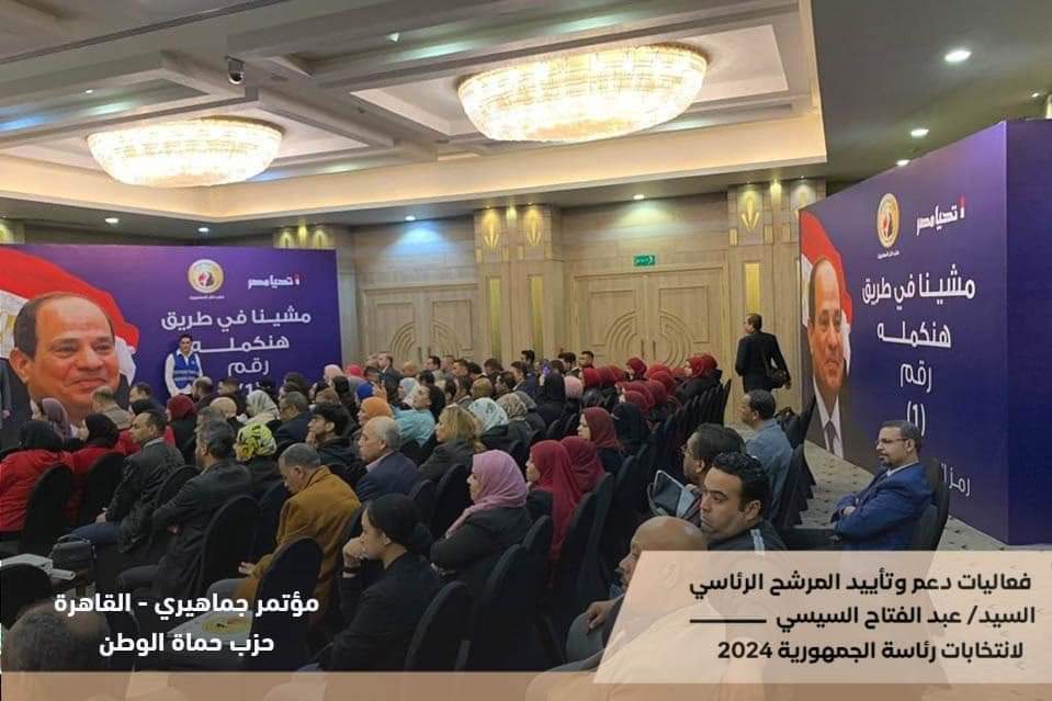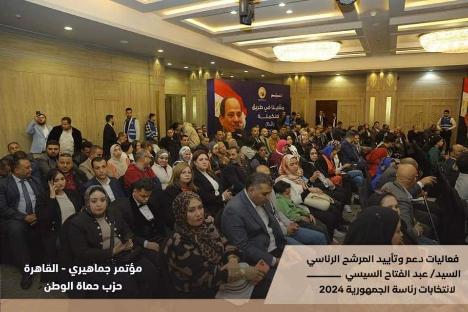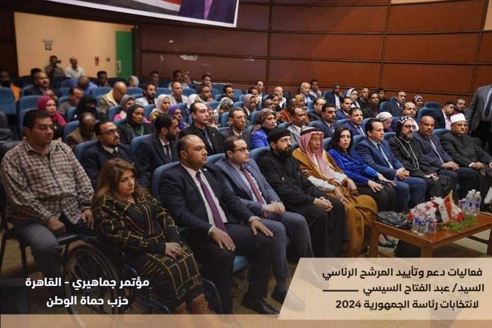 - نظمت أمانة الشئون الدينية المركزية بحزب حماة الوطن، مؤتمرا جماهيريا لدعم المرشح الرئاسي عبد الفتاح السيسي في الانتخابات الرئاسية المقبلة.