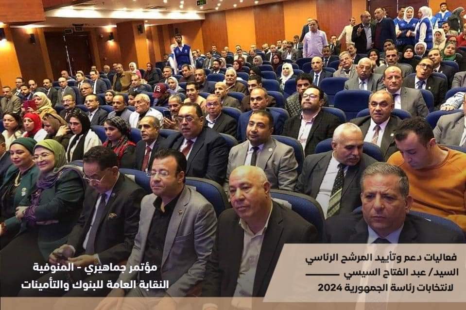 - نظمت اللجان النقابية للعاملين بالبنك الزراعي قطاع المنوفية، مؤتمرًا حاشدًا بالاشتراك مع حزب مستقبل وطن، لدعم وتأييد المرشح عبد الفتاح السيسي، والتأكيد على المشاركة الإيجابية، وانتخابه في الانتخابات الرئاسية المقبلة، والتي تنطلق ديسمبر المقبل.
