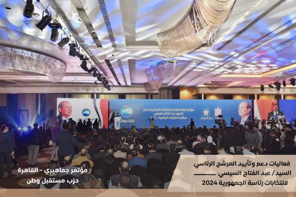 نظمت أمانة الصناعة والتجارة المركزية بحزب مستقبل وطن، مؤتمرا حاشدا، لإعلان دعم وتأييد رجال الصناعة والتجارة للمرشح عبد الفتاح السيسي في الانتخابات الرئاسية المقبلة، في أحد فنادق القاهرة بالتجمع الخامس.