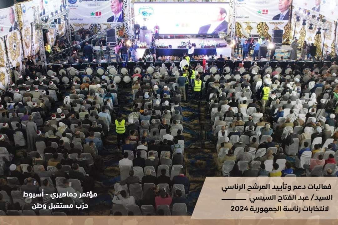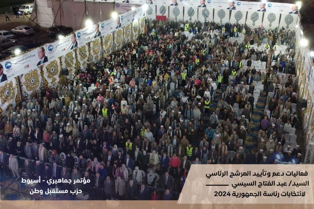 - عقدت أمانة حزب مستقبل وطن بمحافظة أسيوط مؤتمرًا جماهيريًا حاشدًا بحضور أكثر من 5000 مواطن، لدعم وتأييد المرشح الرئاسي عبد الفتاح السيسي لفترة رئاسية جديدة، في قرية الواسطى بمركز الفتح.