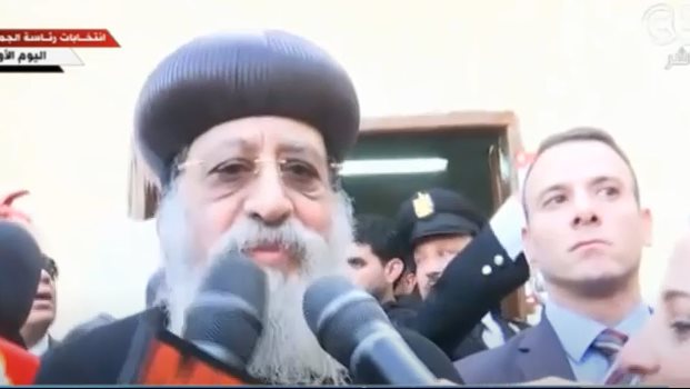وفي وقت سابق، أدلى البابا تواضروس بصوته في الانتخابات الرئاسية، والتي بدأت في تمام الساعة التاسعة صباحًا، ومن المقرر أن تستمر لمدة 3 أيام تنتهي بموجبها يوم الثلاثاء المقبل.