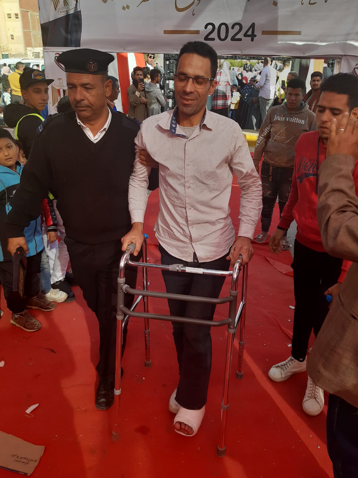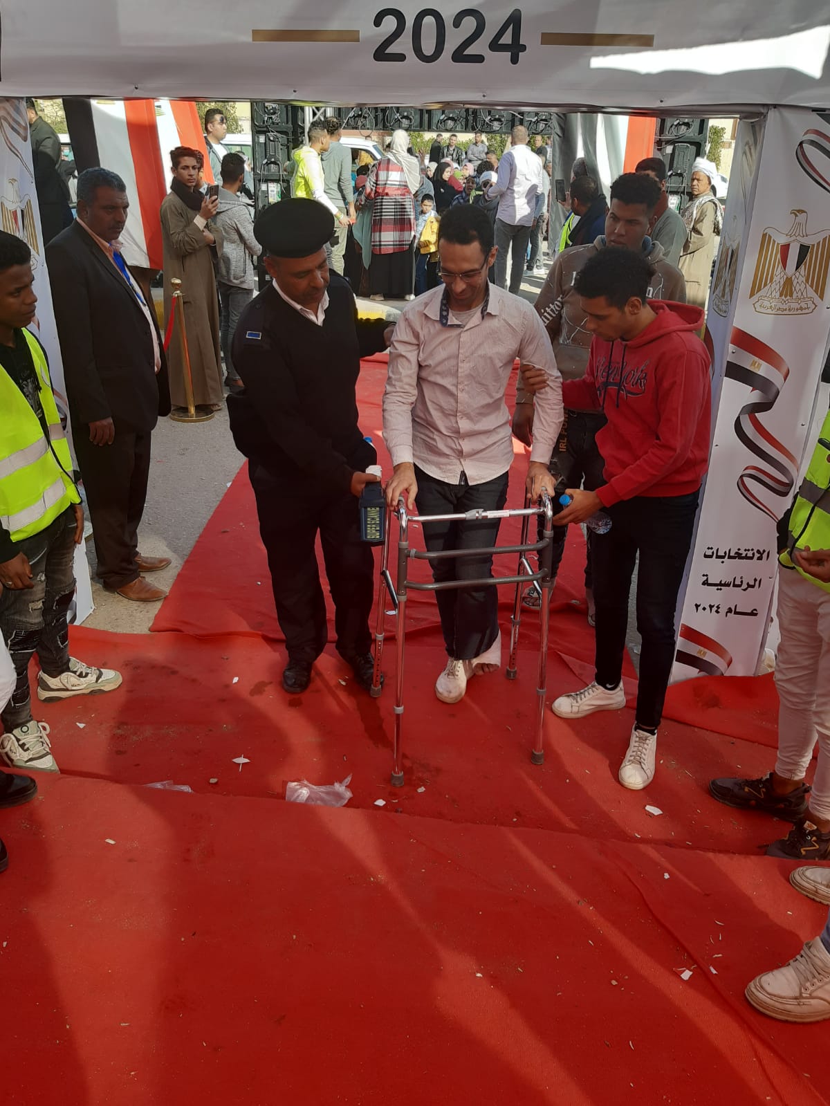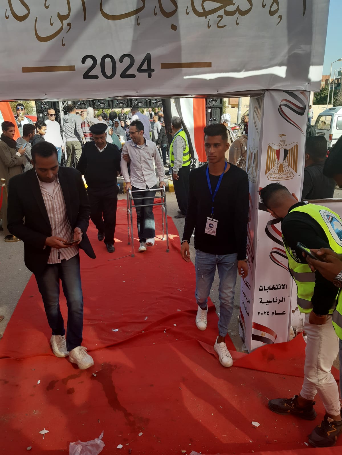 حرص أحد الناخبين بلجنة الشهيد محمد جمال مغربي -عثمان بن عفان سابقا، على الإدلاء بصوته الانتخابي رغم إصابته بكسر في قدمه، ليقوم أحد أفراد التأمين الشرطي على اصطحابه إلى مقره الانتخابي وتمكينه من الإدلاء بصوته.