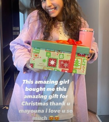 نشر الفنان أحمد السعدني عبر صفحته على موقع الصور والفيديوهات الشهير “ إنستجرام ” ، صورة للفنانة مايان السيد ، وشكرها علي إهداه هدية الكريسماس .