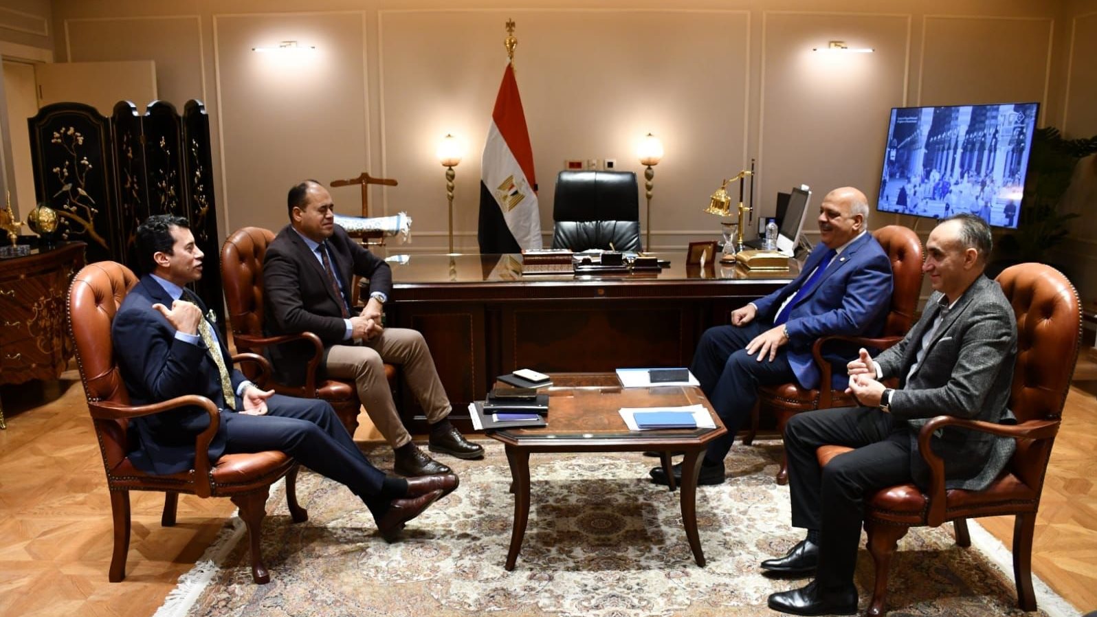 كما تناول اللقاء، مناقشة ملف استضافة مصر لبطولة كأس العالم للرماية في الفترة من 24 يناير وحتي أول فبراير 2024، علي مجمع ميادين الرماية بمدينة مصر الدولية للألعاب الأولمبية بالعاصمة الإدارية الجديدة.