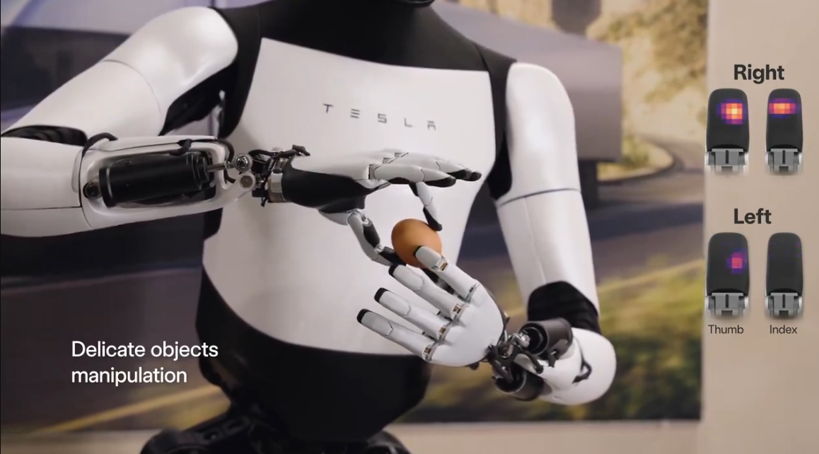 وفي أحدث اللقطات الترويجية التي شاركها الرئيس التنفيذي لشركة تسلا، إيلون ماسك، عبر تغريدة على منصة إكس (تويتر سابقا)، يظهر روبوت Optimus Gen-2 وهو يمشي ويرقص على الموسيقى ويؤدي دفعات القرفصاء، وربما الأكثر إثارة للإعجاب، يلتقط بيضة ويحركها دون كسرها.