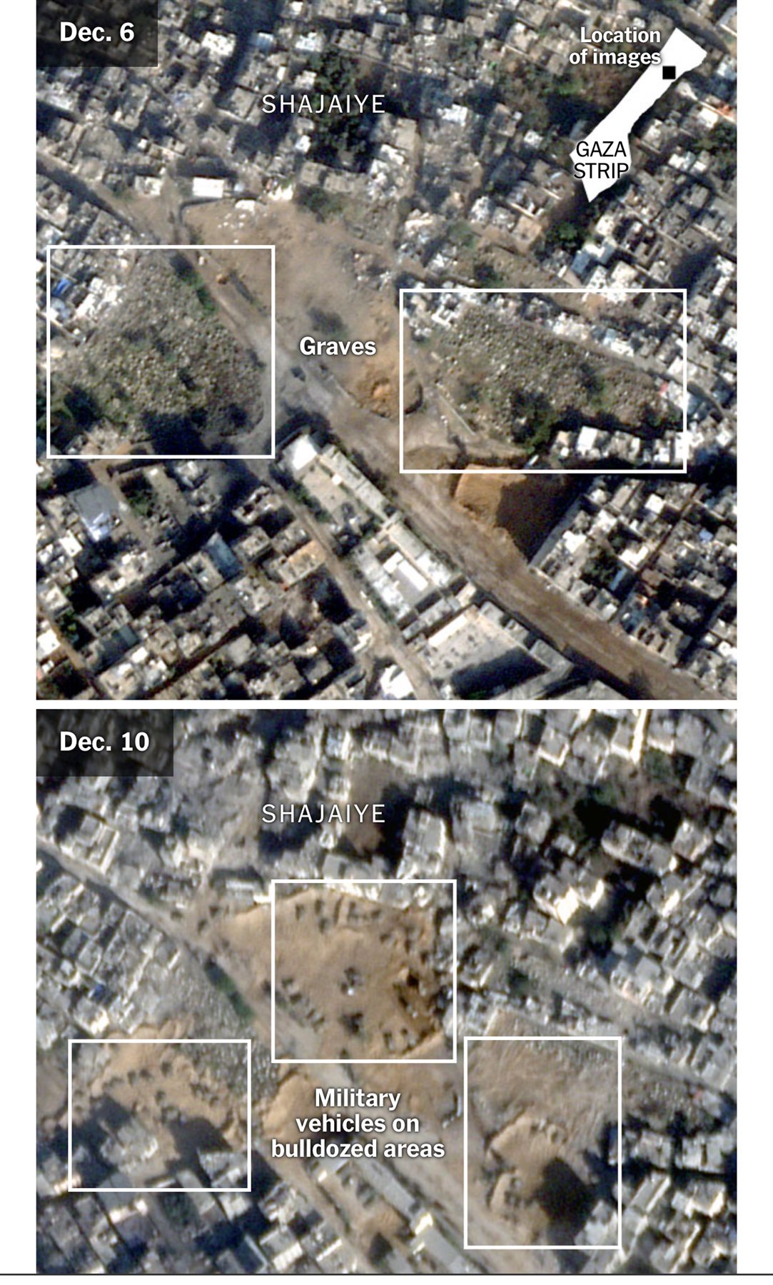 نشرت صحيفة نيويورك تايمز، صورا، التقطت بالأقمار الصناعية، تُظهر جيش الاحتلال الإسرائيلي وقد ألحق أضرارا، ودمر 6 مقابر في قطاع غزة خلال الأسابيع الأخيرة.