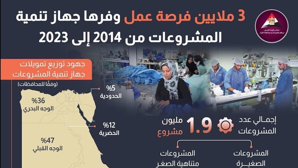 نشر مركز المعلومات ودعم اتخاذ القرار بمجلس الوزراء انفوجراف عبر صفحته الرسمية على موقع التواصل الاجتماعي فيس بوك بشأن المشروعات الصغيرة والمتوسطة.