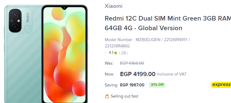 وصل سعر شاومي Redmi 12C لحوالي 4199 جنيهاً لسعة 64 جيجابايت.