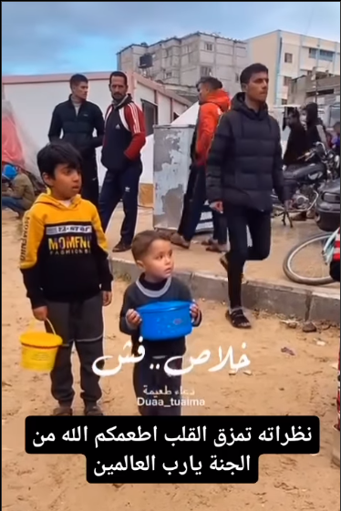 وثق مقطع الفيديو طفل صغير ينتظر معونات الطعام التي يقوم بتقديمها بعض الأهالي إلا أن الطعام قد فرغ لتبدو عليه نظرات تمزق القلب إلا أن طفل أخر قد قام بأقتسام الطعام الذي حصل عليه معه.