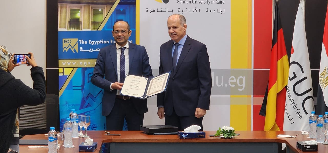 وقع اليوم الخميس، الموافق 21-ديسمبر-2023، أحمد الشيخ –رئيس البورصة المصرية و الدكتور ياسر حجازي – رئيس الجامعة الألمانية بالقاهرة (GUC) بروتوكول تعاون في إطار مبادرة البورصة المصرية لنشر الثقافة المالية والاستثمار والادخار التراكمي بالبورصة، وفي ضوء التعاون لدعم الابتكار وتنمية استخدام التكنولوجيا المالية بقطاع الأنشطة المالية غير المصرفية في مصر بواسطة مركز الابتكار (CORBEH) الذي أنشأته البورصة المصرية كمنصة لمساندة شركات التكنولوجيا الناشئة في مجال الأنشطة المالية غير المصرفية (بالتنسيق الكامل مع الهيئة العامة للرقابة المالية)، وانطلاقا من رغبة الطرفين في تدعيم التعاون بينهما لتعظيم المساهمة في التنمية الشاملة في مصر.