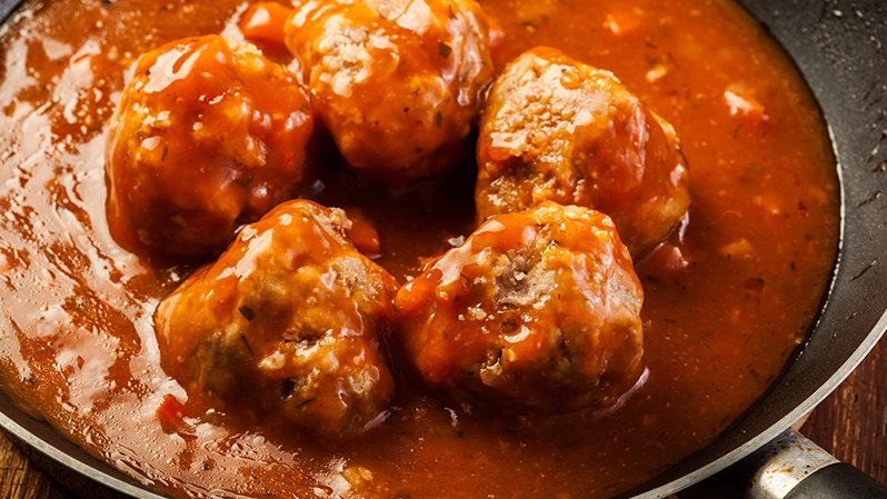 _ نضع الشرائح فى قدر عميق ثم يضاف اللحم المفروم، الملح، الفلفل والبهارات ونخلطهم جميعًا بيدك حتى يتجانس المزيج.
