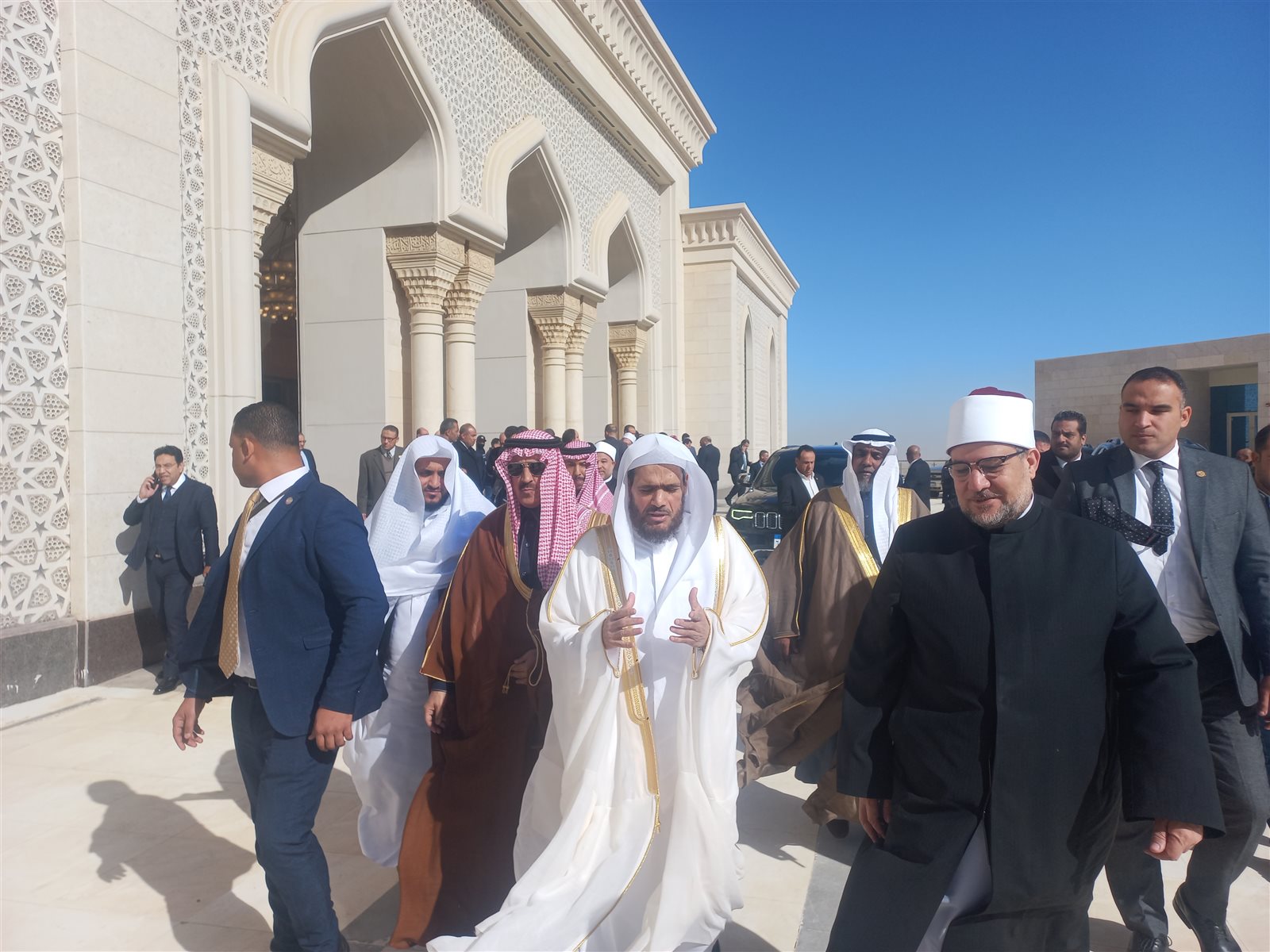 أَمَّ الشيخ عبد الباري بن عواض الثبيتي، إمام الحرم النبوي الشريف، المصلين في أثناء الصلاة داخل مسجد مصر ودار القرآن الكريم في العاصمة الإدارية الجديدة.