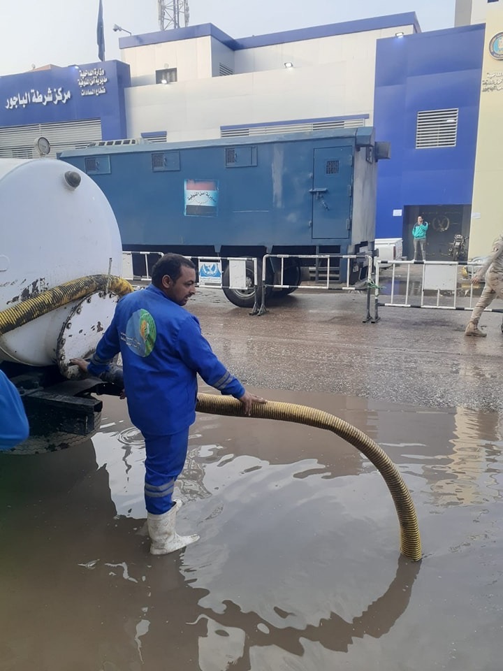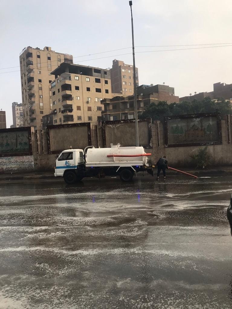 وفي الجيزة أكد المهندس منصور بدوي رئيس شركة مياه الشرب والصرف الصحي بالجيزة، أنه تم سحب معظم تجمعات مياه الأمطار المتساقطة على مختلف مناطق محافظة الجيزة، وتستمر عمليات سحب المياه حتى انتهاء الأعمال، مشيراً إلى استمرار تمركز معدات الشركة على كافة الطرق والمحاور الرئيسية حتى استقرار الأحوال الجوية.