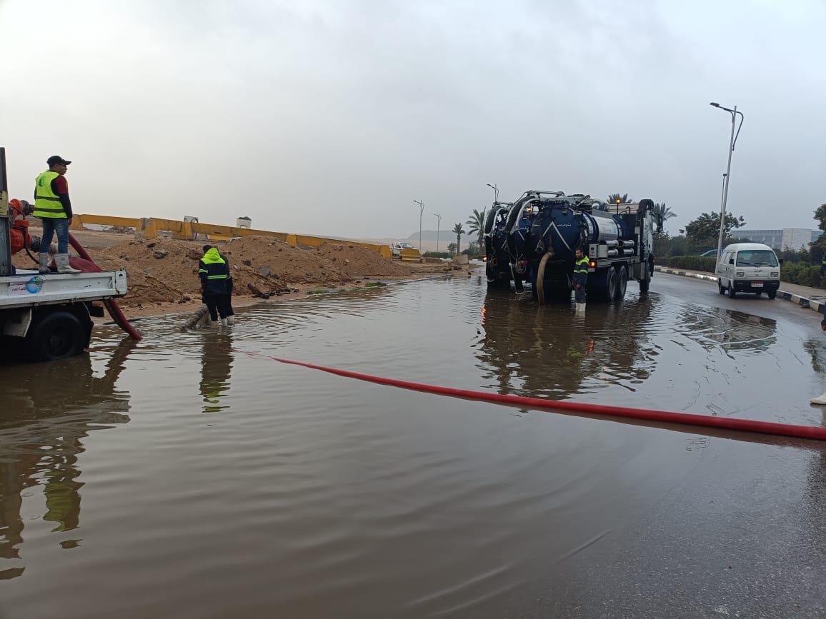 وأشار اللواء محمود نافع رئيس شركة الصرف الصحي بالإسكندرية، إلى أن الشركة قامت برفع درجة الاستعداد منذ مساء الثلاثاء الماضي وفقا لبيان هيئة الارصاد وبالفعل شهدت الاسكندرية على مدار اليومين الماضين امطار ما بين متوسطة وشديدة وتلك النوة هي نوة رأس السنة التي تبدأ من يوم 25، مؤكداً أن الشركة بالتنسيق مع كافة الاجهزة التنفيذية تقوم بدورها والتعامل الفورى مع مياه الأمطار والأمور تسير بشكل طبيعي في شوارع المحافظة.