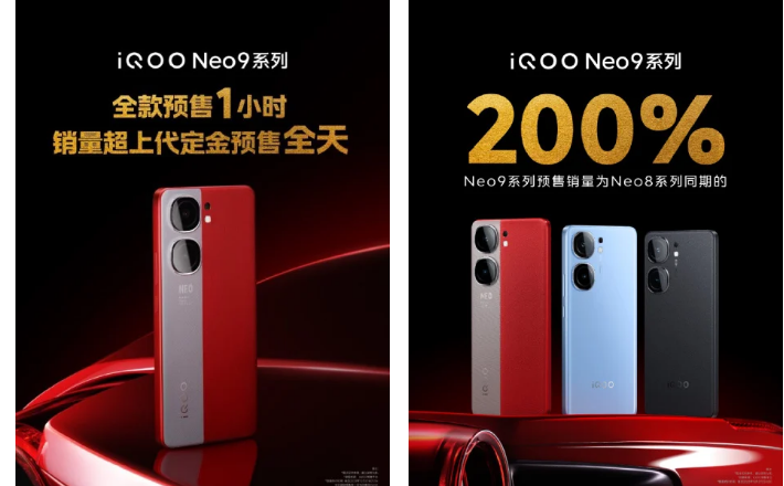 وعلاوة على ذلك، فإن إجمالي مبيعات سلسلة iQOO Neo 9 في اليوم الأول للحجز المسبق هو 200% من إيداع الطلب المسبق لسلسلة Neo 8 في نفس الفترة، بعبارة أبسط، باعت سلسلة iQOO Neo 9 ضعف عدد الوحدات في اليوم الأول للطلبات المسبقة مقارنة بسلسلة Neo 8.