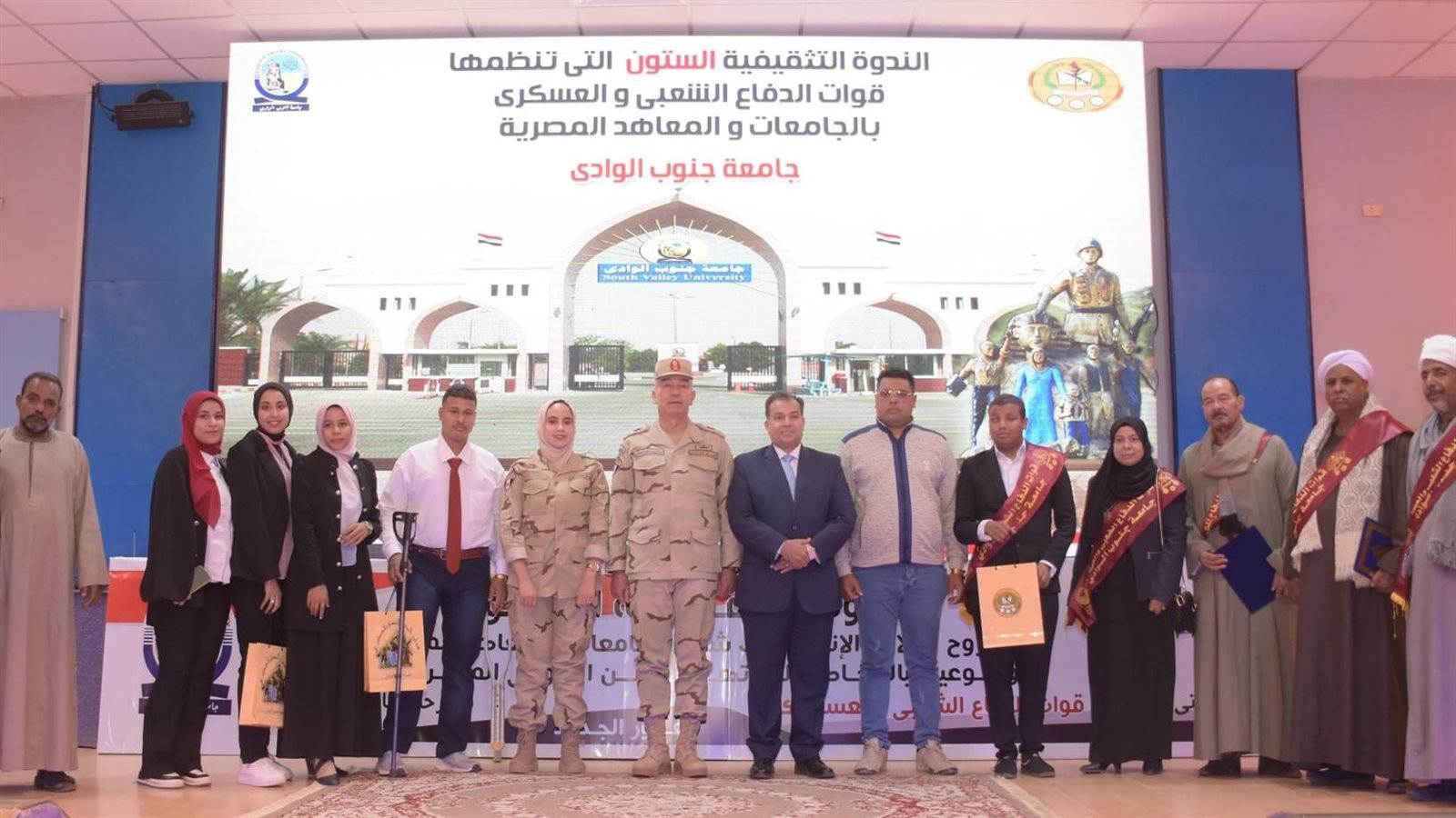 نظمت قيادة قوات الدفاع الشعبى والعسكري ندوتين تثقيفيتين بجامعتى الوادى الجديد وجنوب الوادى ، بحضور قائد قوات الدفاع الشعبى والعسكرى ورؤساء تلك الجامعات.