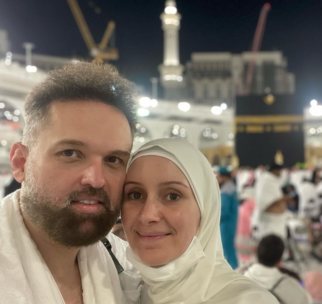 ونشر محمد محمود عبد العزيز، صور له عبر حسابه الرسمي بتطبيق انستجرام، ظهر فيها بملابس الاحرام مع زوجته أمام الكعبة المشرفة.